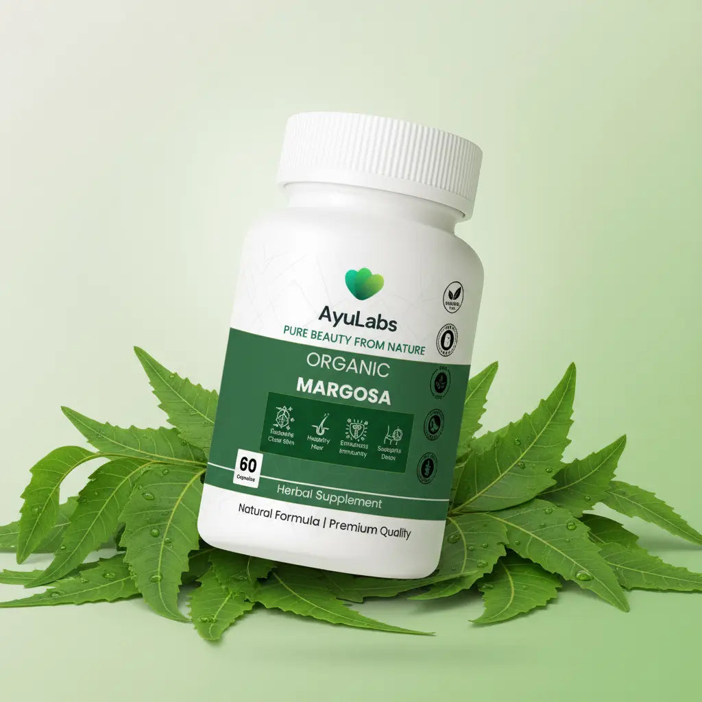 Discover daily balance and a revitalized scalp with AyuLabs Margosa (Neem) Capsules, made from pure, potent leaf extract.